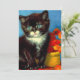 Card featuring a beautiful Van Gogh tuxedo cat! This little kitty poses next to a basket of orange flowers upon a red table. A great gift for cat lovers and Dutch art collectors!