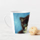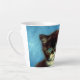 Latte Mug featuring a beautiful Van Gogh tuxedo cat! This little kitty poses next to a basket of orange flowers upon a red table. A great gift for cat lovers and Dutch art collectors!