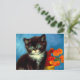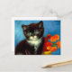Postcard featuring a beautiful Van Gogh tuxedo cat! This little kitty poses next to a basket of orange flowers upon a red table. A great gift for cat lovers and Dutch art collectors!