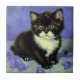 Tile featuring a tuxedo kitten in the style of Vincent van Gogh! This pretty kitty poses with purple flowers. A superb gift for cat lovers and Dutch art collectors!