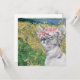 Beautiful and artistic compilation features Claude Monet's The Wheat Field as background with portrait of grey cat with watercolor floral crown overlay.
