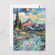 This artwork captures the wonder of Zion Canyon, the serenity of golden hour along the riverbank, and the adventurous spirit of hikers exploring canyon viewpoints and scenic trails. Vibrant colors, textured strokes, and luminous sky swirls create a peaceful wilderness moment that appeals to nature lovers, travelers, and fans of US National Parks. Add your own custom editable text—names, dates, or trip memories—to create a personalized travel keepsake inspired by the timeless beauty of Southwest Utah’s most beloved vista.