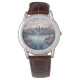 The watch looks really great! Very sharp and well done. The leather band is really nice, though for a man's watch I think it should be longer. Unfortunately, it isn't big enough for my husband's wrist but I will get a replacement because he is very excited to wear it!