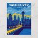 Celebrate the stunning West Coast with this vibrant, vintage-style postcard! It features a dynamic illustration of the Vancouver skyline, dominated by the Harbour Centre Tower and set against the dramatic backdrop of the Coastal Mountains and a yellow-lit bridge. The rich blue and yellow color palette perfectly captures the modern energy and natural beauty of Vancouver, British Columbia, Canada. A stylish piece for travelers, B.C. residents, or fans of bold, graphic cityscapes.