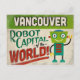 A funny Vancouver Washington vintage travel postcard featuring a friendly robot with fun retro style text that says, "Vancouver, Robot Capital of the world!"