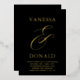 Modern wedding invitation featuring a simple and minimal layout with your names and an elegant ampersand in a large format above your event details. All text on the front is in real foil over a black background and may be changed in the design editing tool.