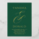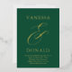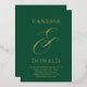 Modern wedding save the date card featuring a simple and minimal layout with your names and an elegant ampersand in a large format above your event details. All design elements on the front are in real foil over an emerald green background. The background colour may be changed in the design editing tool.