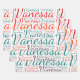 Vanessa. Show and wear this popular beautiful female first name designed as colourful wordcloud made of horizontal and vertical cursive hand lettering typography in different sizes and adorable fresh colours. Wear your positive american name or show the world whom you love or adore. Merch with this soft text artwork is a great present, not only in womens history month, or birthday gift.