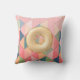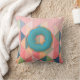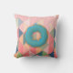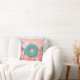 The pillow features a geometric design on both sides with a blueberry doughnut on one side and a vanilla doughnut on the other. Great doughnut decor for any room.