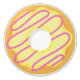 Sweet confectionery Knob! A vanilla frosted doughnut with pink striped icing.