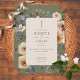 Celebrate your love story with a touch of whimsical charm! Our enchanting wedding invitation features a delicate frame of soft vanilla white watercolor roses, nestled amongst vibrant brown, teal, and rust foliage. The blooms dance across a beautiful sage green background, creating a design as unique and joyful as your love. Playful fonts complete the design, perfectly capturing the lighthearted spirit of your celebration. The text area itself is a soft vanilla cream, ensuring your wedding details stand out beautifully. This captivating suite is perfect for the couple seeking a touch of whimsy and romance. Created by Simply Farmhouse Press.