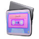 This audio mix-tape cassette is in vaporwave aesthetic light purple and pink.