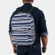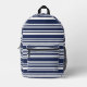 Navy blue and white lines in varying widths form a cool stripe pattern.