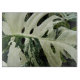 Chop and dice your food safely on this large size, decorative, glass cutting board that features the photo image of a green and white, variegated Monstera plant leaf, commonly known as the Swiss Cheese Plant. A lovely, floral design!
