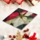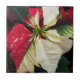 Ceramic tile that features the photo image of a festive Poinsettia plant with red and white, variegated leaves. Select your tile size. A fun, floral design for the holidays and makes a lovely kitchen trivet.