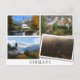A collage postcard with four photographs from Germany in autumn, like a church in Ramsau bei Berchtesgaden, a church in Berchtesgaden, Monreal village and Burg Eltz castle. One photo is a bit twisted to create the illusion of a loose laying photo. It comes with the text 'Germany'.
