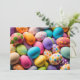 This unique card features several colourful and polka-dotted Easter eggs. You can adjust the text inside this card to make this greeting feel more personal.