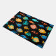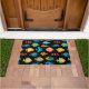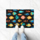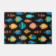 Various colourful tropical fish graphics on black background, seamless repeat pattern
