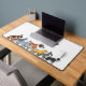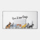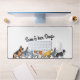 This desktmat features a colorful illustration showcasing different dog breeds lined up. This image highlights the diversity and characteristics of popular dog breeds.