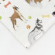 A colorful optimistic dog pattern. The space between dogs is filled with colorful bones and paws.