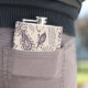 The flask itself is fine. It’s a cheap flask, obviously bought in bulk, however am prepared to overlook that. Given that it is a personalized item, I would have liked to have seen gift boxing instead of the generic packaging. Terrible printing, and/or quality. It’s a cheap, tacky vinyl. It is not cut straight and is also applied in a way that it is overhanging the bottom, causing the glue to catch on items and it will eventually roll and tear, damaging the wrap.