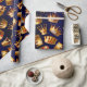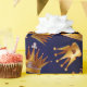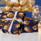 Various gold crowns with gems on blue & black embellished background, seamless repeat pattern