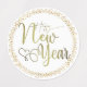 with white background and a golden grain circle with happy christmas and happy new year in various styles.