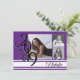 Purple, white and black 2019 varsity stripe invitation. Three photos can be added to this festive Class of 2019 Graduation invitation or announcement in purple. Customise text on back to fit your needs.
