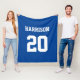 Varsity sports blue and white custom name number monogram Fleece Blanket.