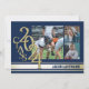 Class of 2024 Gold varsity stripe triple photo graduation announcement in blue and gold.