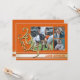 Class of 2025 Gold varsity stripe triple photo graduation announcement in orange and gold.