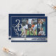 Class of 2024 Silver varsity stripe triple photo graduation announcement in blue and silver.