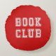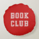 A bookish pillow featuring the words "Book Club" in white against an editable background (click customise to change the background colour).
