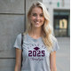 Fun varsity-style grad t-shirt featuring the graduation year in large numbers with the "class of" displayed in an arch design above. A grad cap and tassel are placed in the centre and personalised with the grad's name. Makes a great personalised keepsake gift for the grad.