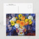 A postcard with the fine art painting by the Belgian artist Théo van Rysselberghe (1862-1926), Vase of Flowers (1907). A richly coloured floral still life of a dahlia bouquet in orange, yellow, and blue in a ceramic vase.