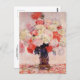 A postcard with the painting, Vase of Peonies (1882), by Claude Monet (1840-1926). Monet was a French Impressionist painter. A still life displaying a vase full of red, yellow and white peony flowers.