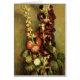 Vase with Hollyhocks by Vincent van Gogh is a vintage fine art post impressionism still life floral nature painting. A beautiful spring garden bouquet of pink, red and white hollyhock flowers in a vase.