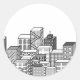 Vector Cityscape (Black & White) Classic Round Sticker