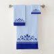 Vector Ornament & Royal Blue Stripes on Light Blue Bath Towel Set