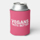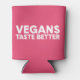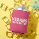 This graphic features bold, pink typography stating “VEGANS TASTE BETTER” prominently. The design employs a modern, eye-catching font that emphasizes the positive message about veganism. The bright colour scheme and strong text create an engaging visual, appealing to those who appreciate or promote plant-based lifestyles. This piece can serve as a slogan for a vegan campaign, restaurant, or awareness initiative