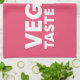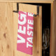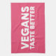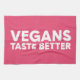 This graphic features bold, pink typography stating “VEGANS TASTE BETTER” prominently. The design employs a modern, eye-catching font that emphasizes the positive message about veganism. The bright colour scheme and strong text create an engaging visual, appealing to those who appreciate or promote plant-based lifestyles. This piece can serve as a slogan for a vegan campaign, restaurant, or awareness initiative