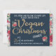 This retro Vegan Christmas invitation features white and golden text on an elegant blue background with floral wintry decorations and borders.