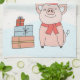 Vegan Christmas with cartoon piglet and snowflakes Tea Towel