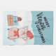 This Vegan Christmas hand towel features a nice cartoon piglet with a red hat and scarf and some colourful presents, on a snowy background.
