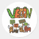 Vegan design shows the word made of vegetables with peas, carrots, potatoes and fruits. Underneath is an animal protest with placards encouraging a plant based meat free lifestyle. Get the vegan message across in a fun friendly way.