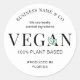 Promote your plant based products with a custom vegan product label. This modern 100% vegan sticker includes space for your business name, location and tag line so you can make professional stickers for your plant based products.