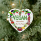 Heart shaped from vegetables with the words in the centre "Vegan, because I care about the planet." Pretty and colourful way to educate others that we have to quit putting such a burden on the planet.