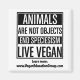 Carry the clear vegan message that animals are NOT objects with this great conversation starter from South Florida Vegan Education Group! In a society that objectifies, exploits and treats non-human individuals as disposable, replaceable property, it is up to each of us to challenge the status quo and dismantle speciesism through unequivocal vegan education. Emblazoned with clear and direct messages, this bold and thought-provoking design - coupled with the SFVEG website address for more information - brings the ideas of veganism and animal rights anywhere wherever it's seen.