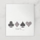Perfect for a glamourous and glitzy Las Vegas casino wedding, this white folded place card features faux silver glitter with black card suits, a pre-printed space to write in table numbers and a blank white space to write in your guests names. Does your caterer need to know each guest's meal choice? Edit this design to add a coloured backer unique to each meal type or use a sticker to denote who gets what type of meal. These cards are sold in packs of 25 so don't forget to order enough for each place setting!