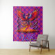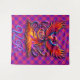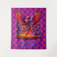 Bright and vivid colours of purple, magenta, orange, blue, and yellow; with a phoenix